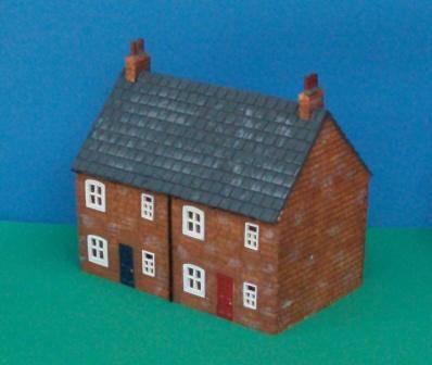 Handcrafted - Kit Built Resin Model Railway Building - Double Terrace House 00 Scale (Stone Colour)
