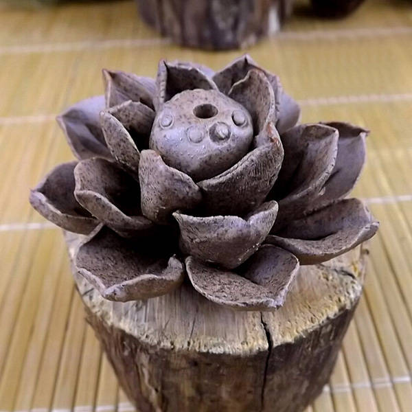 Description:Handmade clay ceramic incense holder lotus leaf incense burner.