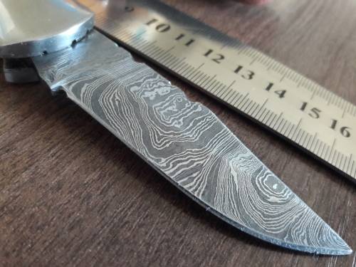 Handmade Damascus steel folding knife with MICARTA handle scales. THIS AUCTION will only ship 28th