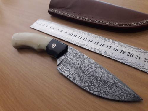 THIS IS THE EXACT KNIFE YOU WILL RECEIVE !!!!!!!!!!!!!!!!!!!!! AWESOME KNIFE !!!!!!!!!!! BULL HORN AND CAMEL BONE HANDLE SCALES, HANDMADE DAMASCUS STEEL Hunting knife !!!!!!!!!!!