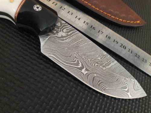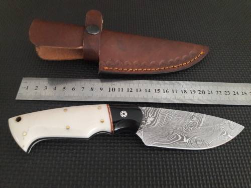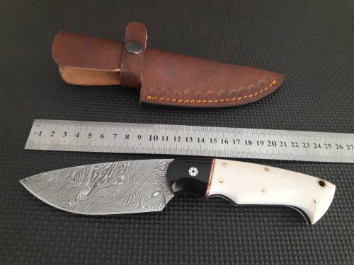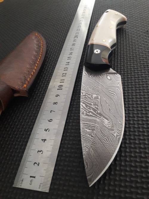 THIS IS THE EXACT KNIFE YOU WILL RECEIVE !!!!!!!!!!!!!!!!!!!!! AWESOME KNIFE !!!!!!!!!!! BULL HORN AND CAMEL BONE HANDLE SCALES, HANDMADE DAMASCUS STEEL Hunting knife !!!!!!!!!!!