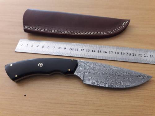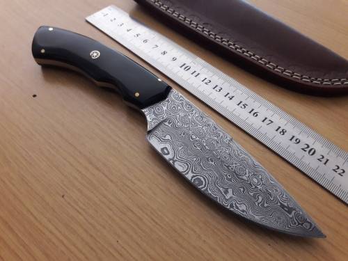THIS IS THE EXACT KNIFE YOU WILL RECEIVE !!!!!!!!!!!!!!!!!!!!! AWESOME KNIFE !!!!!!!!!!! BULL HORN HANDLE SCALES, HANDMADE DAMASCUS STEEL Hunting knife !!!!!!!!!!!