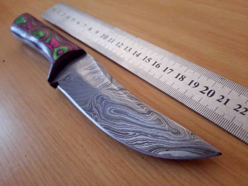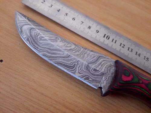 Handmade Damascus steel HUNTING knife with Wooden handle scales. Please study all pictures carefully before placing your bid, this knife is NOT perfect and has some folding/forging faults. NO SHEATH INCLUDED with this knife.