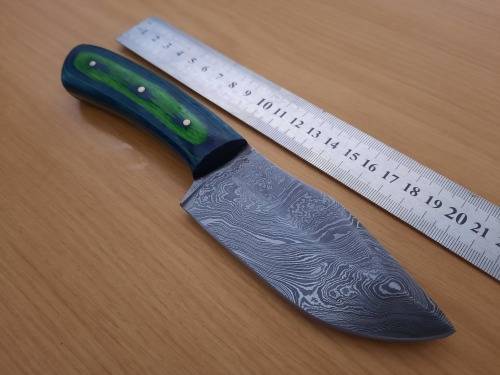 Handmade Damascus steel HUNTING knife with Wooden handle scales. Please study all pictures carefully before placing your bid, this knife is NOT perfect and has some folding/forging faults. NO SHEATH INCLUDED with this knife.
