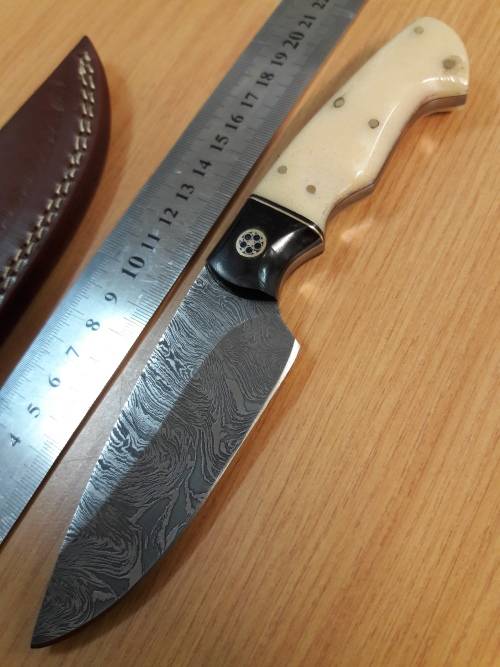 THIS IS THE EXACT KNIFE YOU WILL RECEIVE !!!!!!!!!!!!!!!!!!!!! AWESOME KNIFE !!!!!!!!!!! BULL HORN AND CAMEL BONE HANDLE SCALES, HANDMADE DAMASCUS STEEL !!!!!!!!!!!