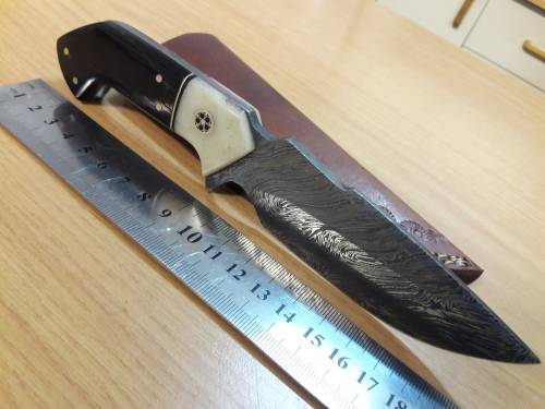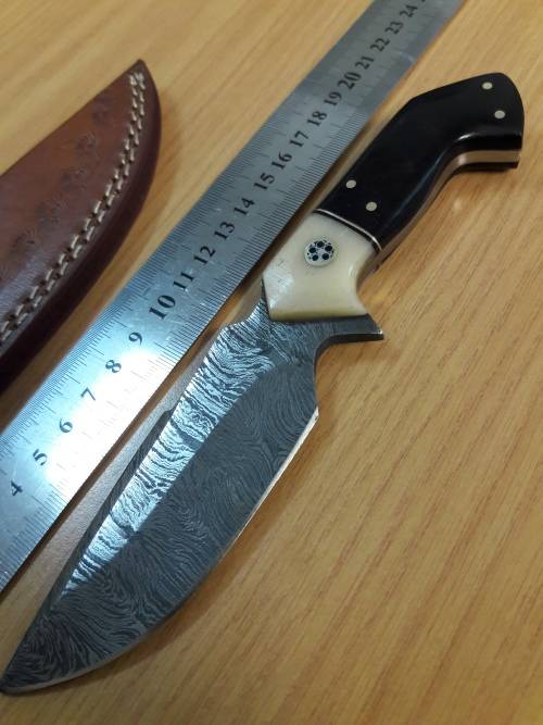 THIS IS THE EXACT KNIFE YOU WILL RECEIVE !!!!!!!!!!!!!!!!!!!!! AWESOME KNIFE !!!!!!!!!!! BULL HORN AND CAMEL BONE HANDLE SCALES, HANDMADE DAMASCUS STEEL !!!!!!!!!!!