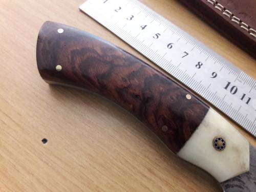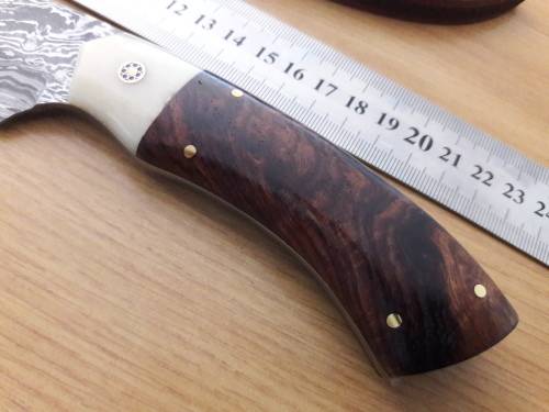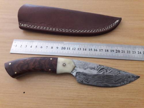 THIS IS THE EXACT KNIFE YOU WILL RECEIVE !!!!!!!!!!!!!!!!!!!!! AWESOME KNIFE !!!!!!!!!!! CAMEL BONE AND WOODEN HANDLE SCALES, HANDMADE DAMASCUS STEEL !!!!!!!!!!!