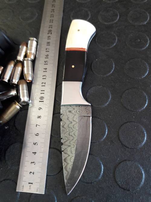 Handmade DAMASCUS steel Knife with Camel bone and bull horn handle. R1 start, No reserve auction.