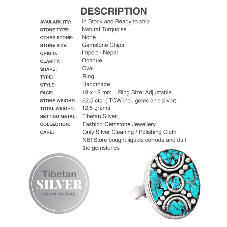 HANDMADE NATURAL TURQUOISE GEMSTONE RING ADJUSTABLE SIZE