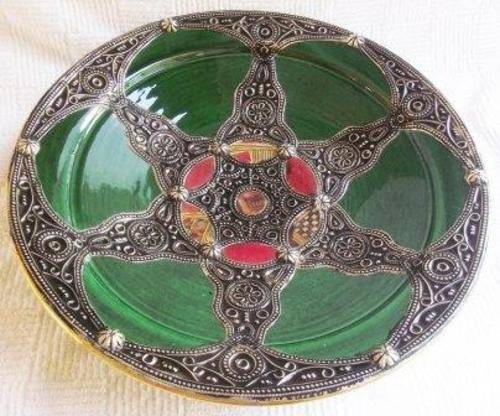 Handmade Moroccan Imported Green metal decorated wall plate - 41 x 8cm