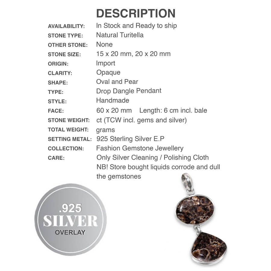 NATURAL TURRITELLA OVAL GEMSTONE PENDANT