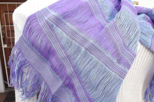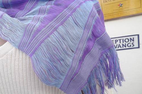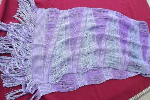Handmade scarf by longneck people of Burma.In violet and light blue.Made with cotton yarn.Light weight-can use in summer to accessorize.New-never used.Length 112 cm.Width 27cm