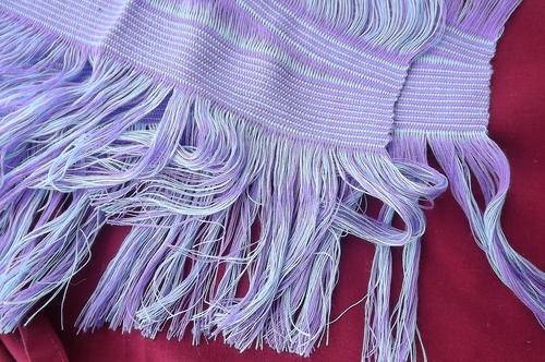 Handmade scarf by longneck people of Burma.In violet and light blue.Made with cotton yarn.112 x 27cm