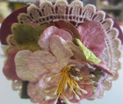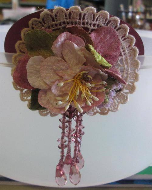 Outstanding Handmade Small Vintage Lace Brooch with Velvet Flower & Beads!