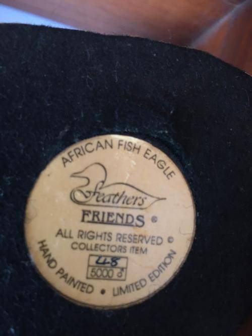 Feathers friends hand painted limited edition wooden African fish eagle statue. Statue is in good condition with minor de-colouring from age. Statue is 27cm high.
