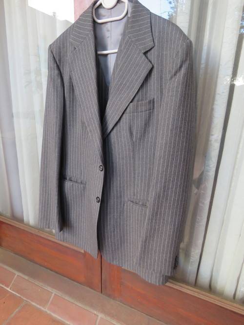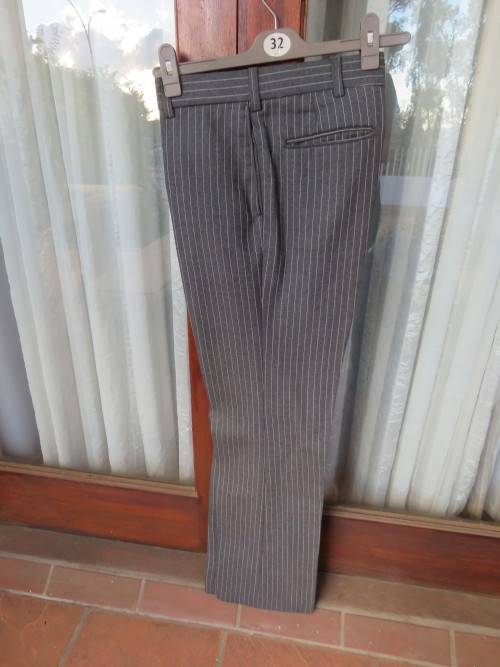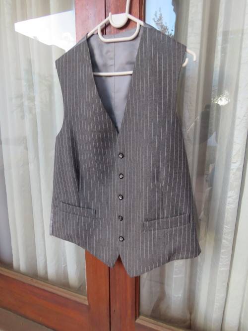 Handsome 3 piece men's suite from 'HEPWORTHS' made in 'Treviva'.Jacket size 40L. Pants size 34.Jacket with button down waistcoat with 2 front pockets.Straight legged pants with 2 pockets at back an 2 at sides.In 55% polyester and 45% new wool.Suits are dry cleaned before shipping.As new.
