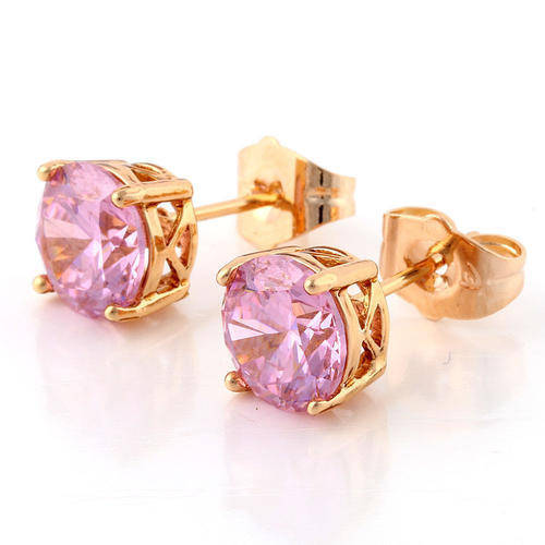 Handsome Gold Filled Saucy 8mm Pink CZ Stud Earrings H0469  (K4437)