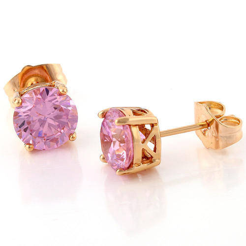 Handsome Gold Filled Saucy 8mm Pink CZ Stud Earrings H0469 (K4437)