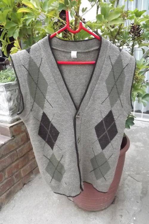 Handsome Men's acrylic knitted waistcoat with diamond pattern.Size Medium.Chest 108cm.