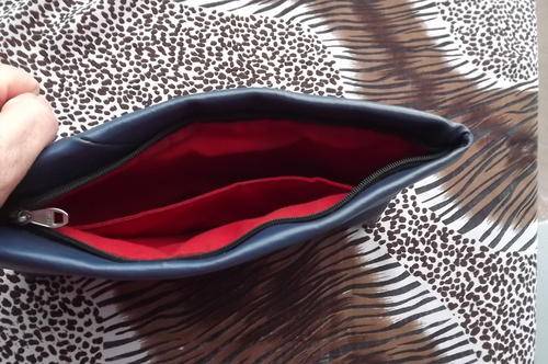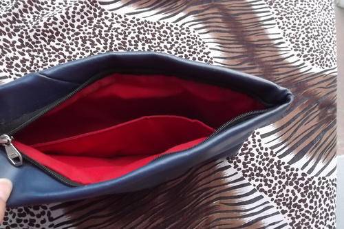 Handy Navy Clutch Bag closing with zip. In good condition - red inner- 17x29cm