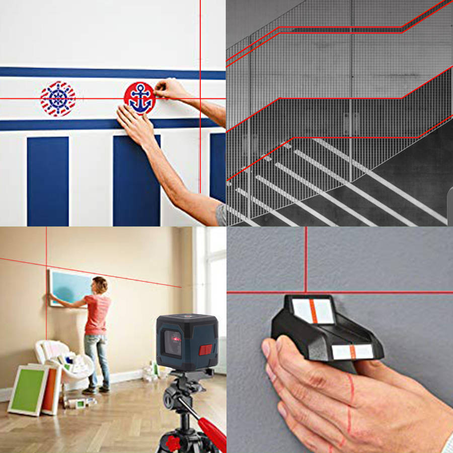 ★ High visibility and accuracy line laser-Two powerful cross line lasers, the laser line is clear and sharp and easily project bright red cross line at 110 ° wide angle to help your leveling work You Horizontal line accuracy: ± 2 mm / 10 m (one direction) Vertical line accuracy: ± 2 mm / 5 m (one direction). Range: 15 meters. Self-leveling slope: 110 degrees.