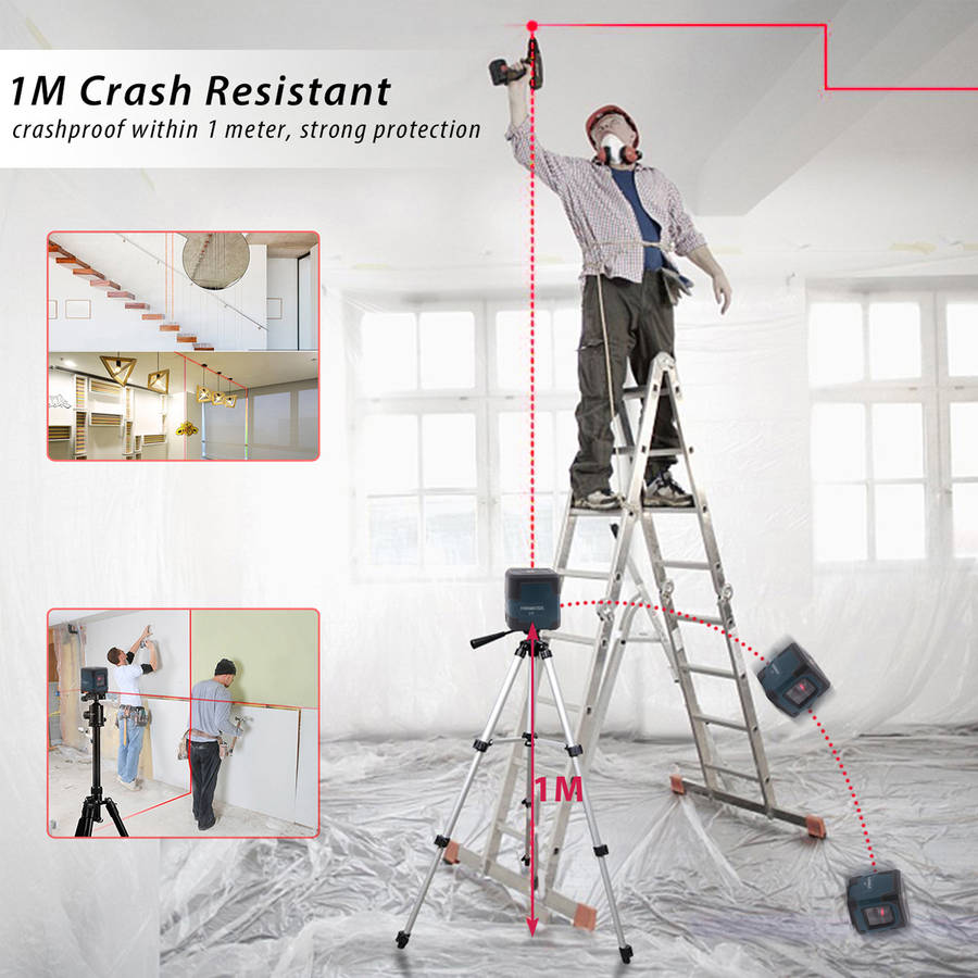 ★ 4 Feet Crash Proof Laser Level & Hands Free Working-IP54 Protection Class (Splash and Dustproof), Shockproof Housing, provides 4 Feet Crash Proof ideal for construction site work. It is also possible to attach the device (sold separately) using a magnetic rotation bracket (sold separately) or using screws for a 1/4 "tripod mount. Provides hands-free operation.