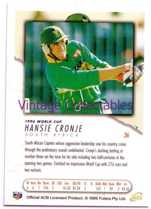 HANSIE CRONJE - 1996 World Cup - Cricket futera card #36