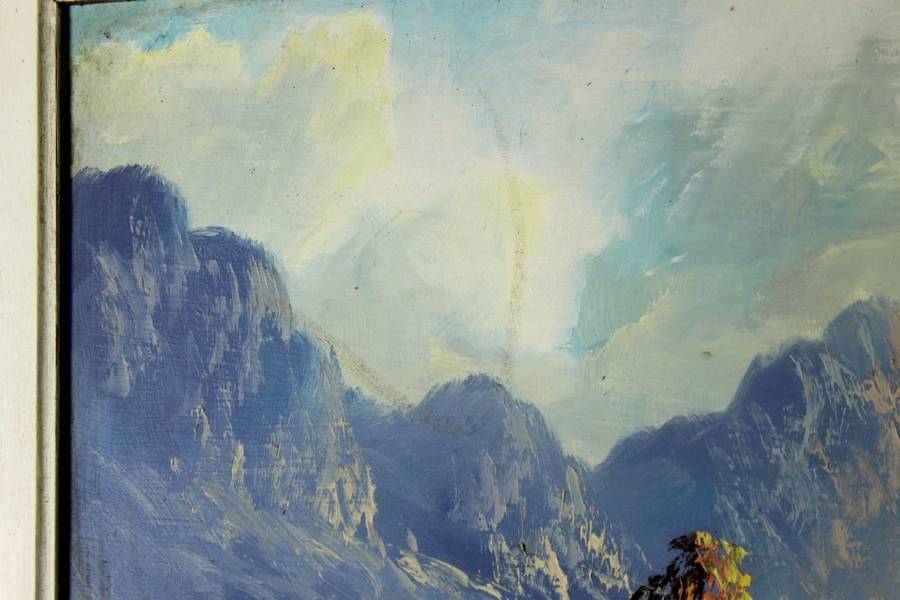 Note the frame is tattered and will need replacement. There is also a mark on the paint, as shown.