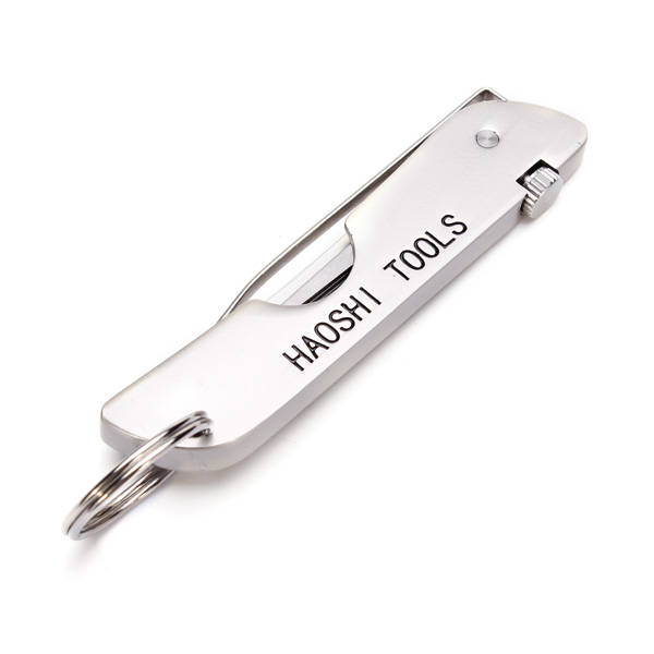 HAOSHI Foldable Locksmith Tools Lock Pick Set This HAOSHI foldable Style Lock Pick Set is the perfect solution if you want to have a portable lock pick set. Made of high quality steel, contains six different sized lock picks and a "L" type tension wrench. It is very useful and economic for Locksmith work.