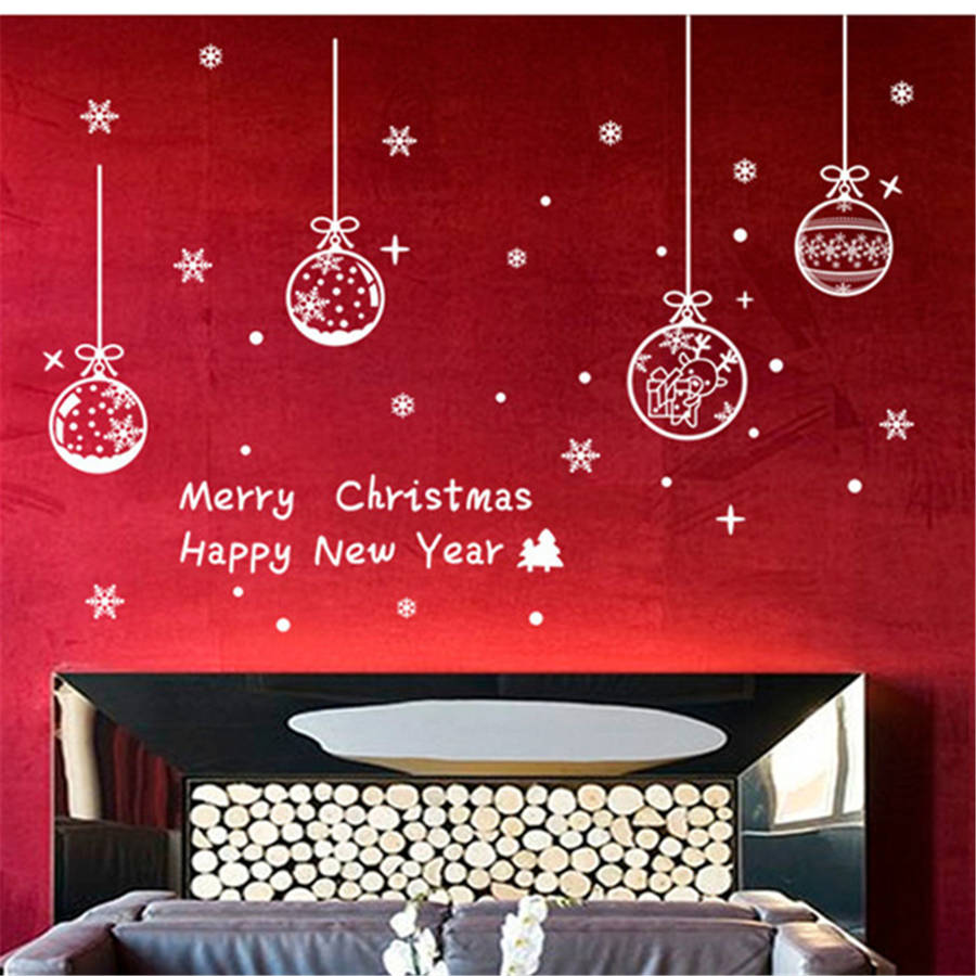 Happy New Year & Xmas Merry Christmas Window Sticker Snowflake Bell Home Decorations