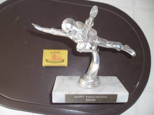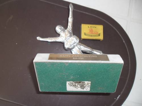 Happy Parachuting Keith heavy trophy size is 150mm high ordinary postage is R60