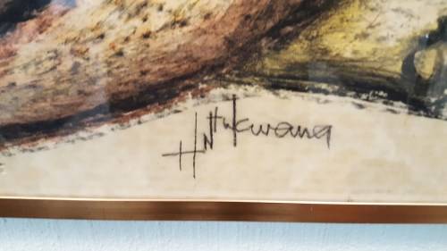 What a beauty!! This is a beautiful mixed media by one of SA's favorite artist. The composition and execution is simply outstanding!! The painting measures 100cm x 61cm and the frame measures 103cm x 64cm. Please note the damage area as per the photo. Low price, bid now
