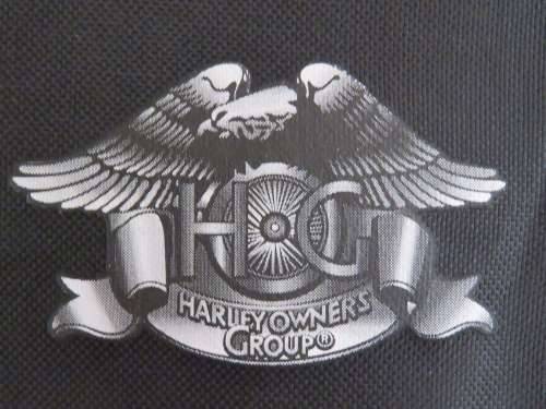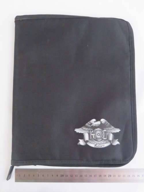 Harley Davidson Owner's Group folder with pin badge and HOG cloth badge