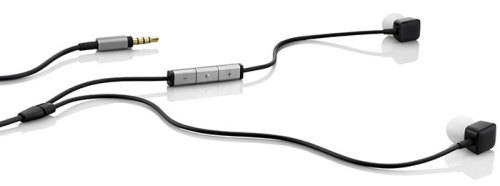 The rectangular black housing echoes the shape and styling of an iPhone; a three-button mic/remote lets you take calls and control volume and playback.