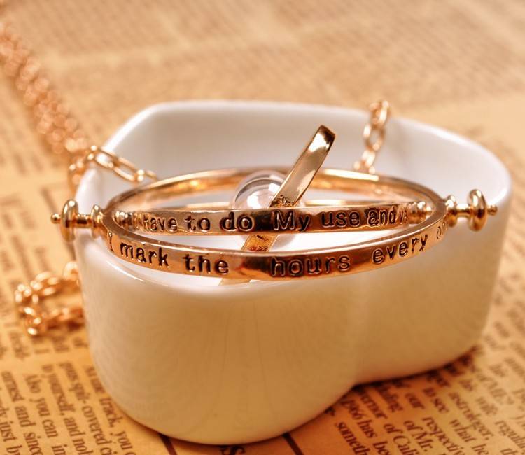 Harry Potter Time Turner Hermione Granger Rotating Spins Gold Hourglass Necklace