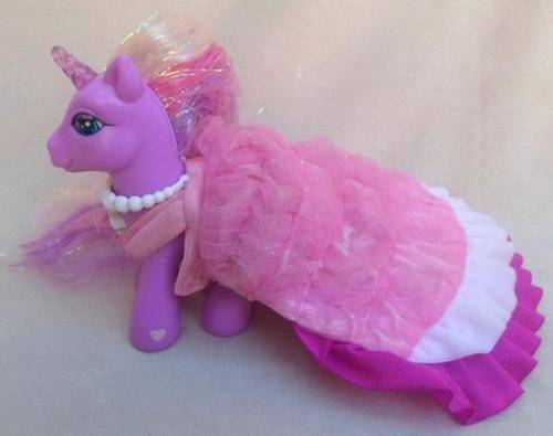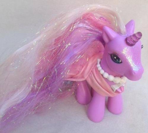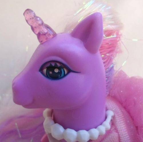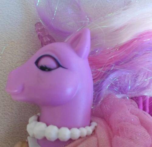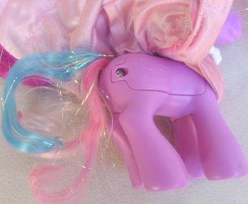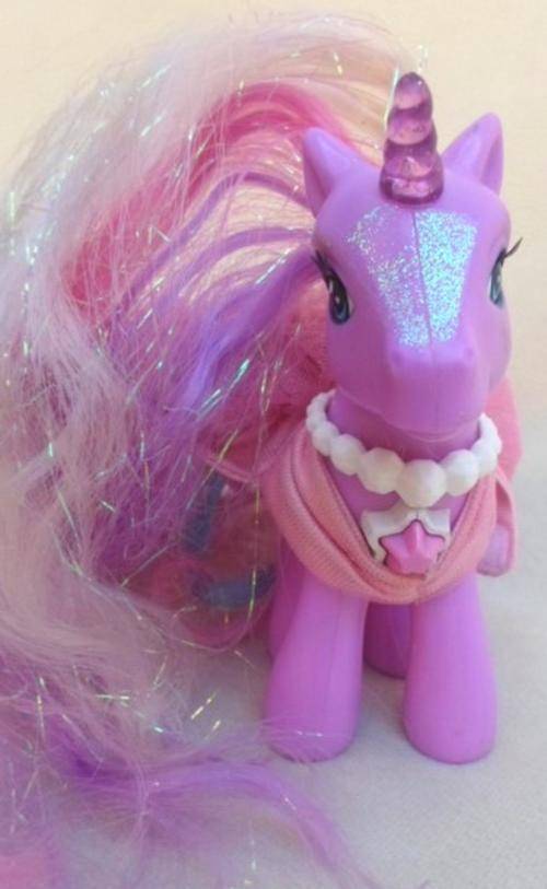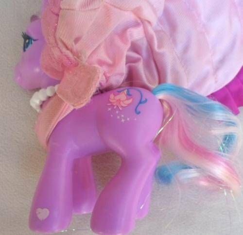 13CM TALL, LILY LIGHTLY IS A G3 PONY THAT CAME OUT IN 2006 AND IN GOOD CONDITION WITH SMOOTH, SILKY MANE AND TAIL AND GLORIOUS CLOAK.(SMALL MARK ON CLOAK - REFER LAST IMAGE) PRESS HER NECKLACE AND HER EYES OPEN AND CLOSE. WHEN I FIRST GOT HER HER UNICORN HORN ALSO LIT UP BUT THIS DOESN'T HAPPEN ANYMORE - I DON'T KNOW IF THE THREE FLAT-TYPE LITTLE BATTERIES NEED TO BE REPLACED OR IF THE MECHANISM HAS STOPPED WORKING AND HAVEN'T TESTED AS I DON'T HAVE THAT TYPE OF BATTERY. HER CLOAK IS ALSO SUPPOSED TO LIGHT UP BUT THIS I HAVEN'T SEEN AT ALL. REFER IMAGES SHIPPING R50 ( COMBINED RATES AVAILABLE)