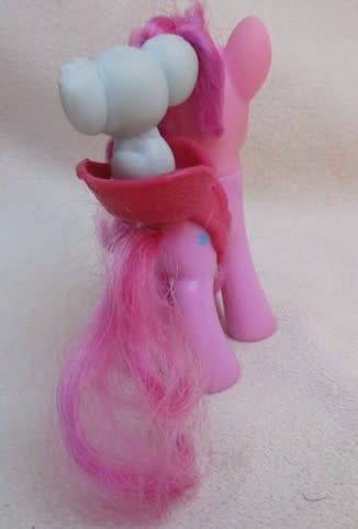 8CM TALL AND IN VERY GOOD CONDITION WITH CUTE PASSENGER AND CLIP IN HAIR. MARKED 'MY LITTLE PONY/2010 HASBRO/MADE IN CHINA' UNDER HOOVES. REFER IMAGES