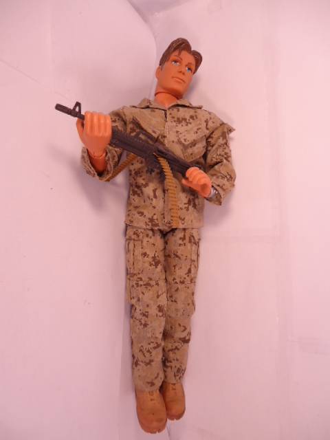 The model on display is a Hasbro - GI Joe Action Figure with gun and ammunition, in excellent condition. Unboxed. Figurine is missing some accessories.