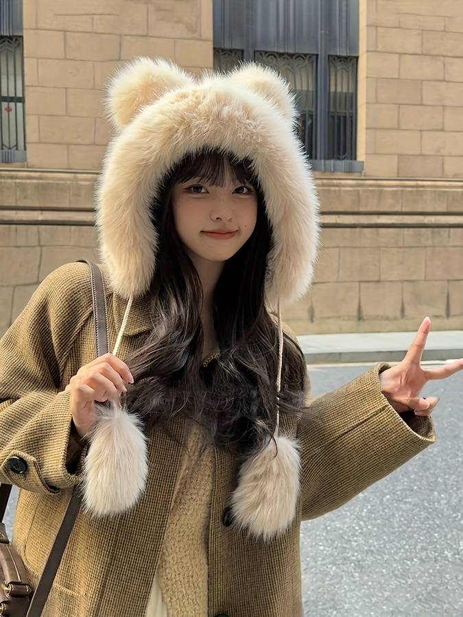 Hat A Brown color A Brown: Women's Winter Plush Hat - Soft Fluffy Ear Flaps & Neck Warmer, Non-Elastic Fit Suitable types:Inelasticity Special Features:Lightweight Material:Polyester Cap Type:Furry Craftsmanship:Other Operation Instruction:Hand wash or professional dry clean Weaving Method:Woven