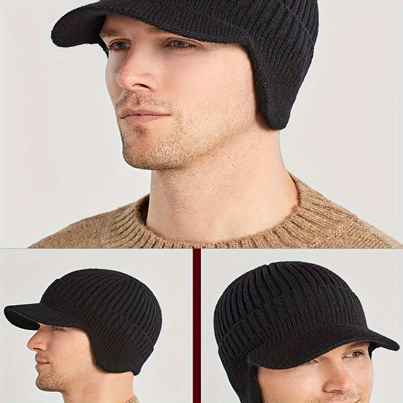 Hat Beige color Beige: 1pc Men's Winter Knit Beanie Hat - Thick Warm Polyester, Soft Breathable Ribbed Material Composition:Textile material content ᄀ￝80%
