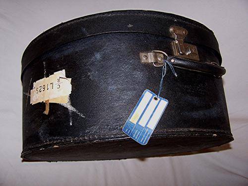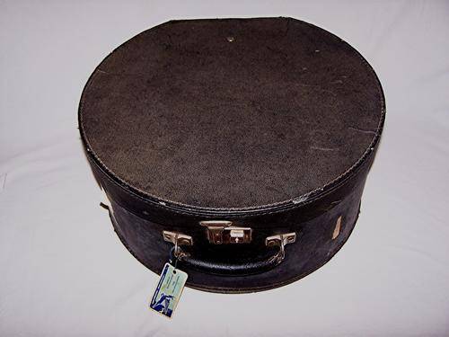 This very versatile vintage hat box was made by Hippo Travel Goods.