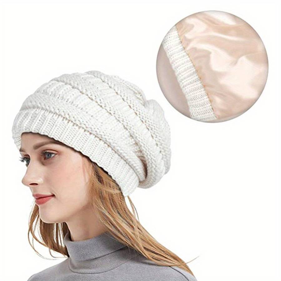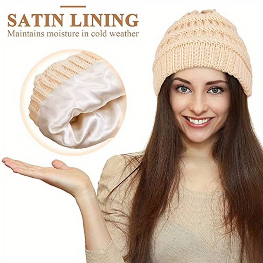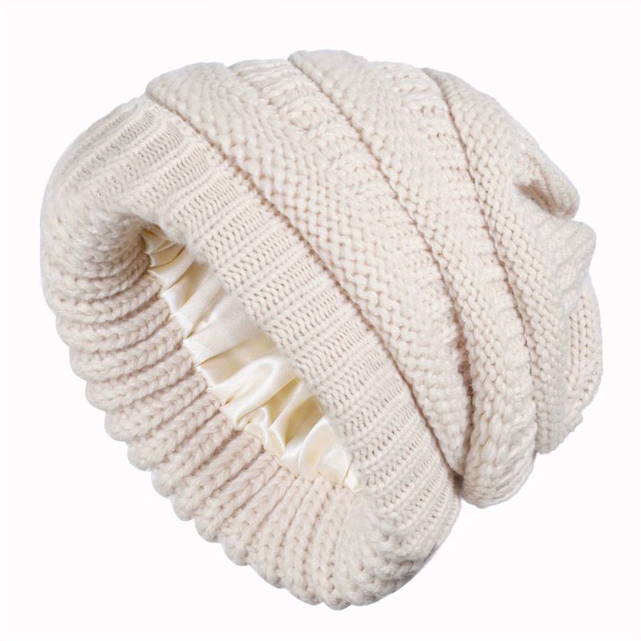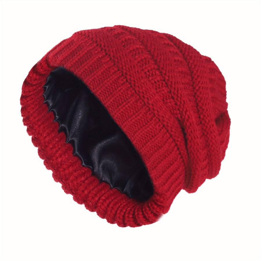 Hat Burgundy color Burgundy: Winter Warm Satin Lined Beanie Solid Color Soft Knit Hats Lightweight Casual Sku Suitable types:Inelasticity Special Features:Lightweight Material:Acrylic Cap Type:Beanie Craftsmanship:Knitting