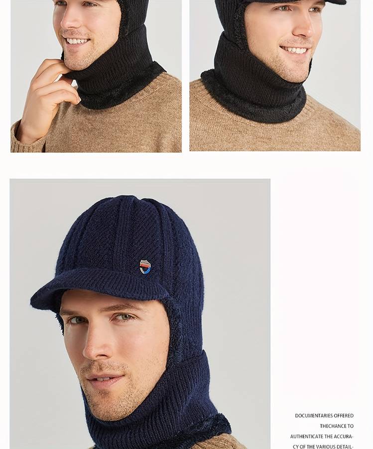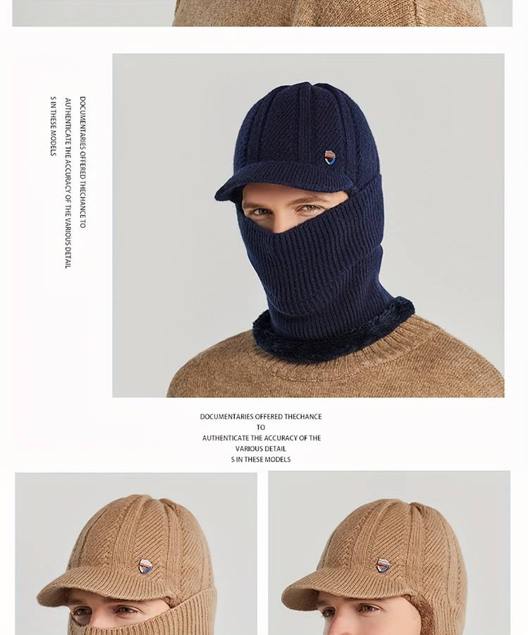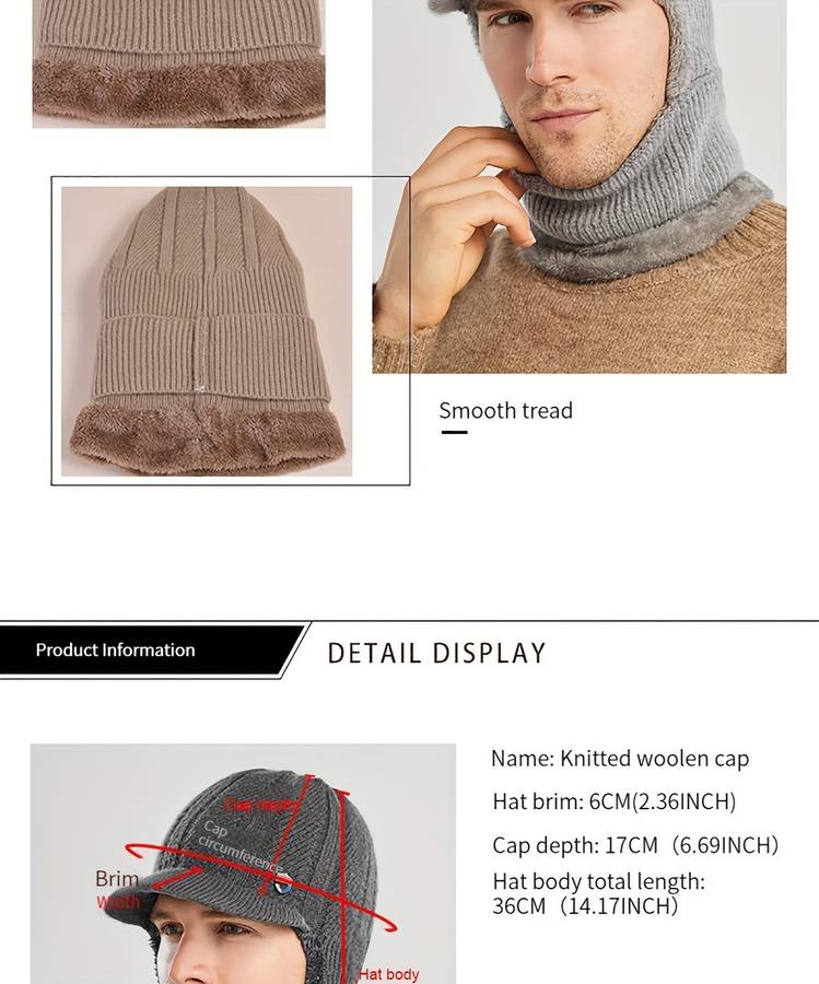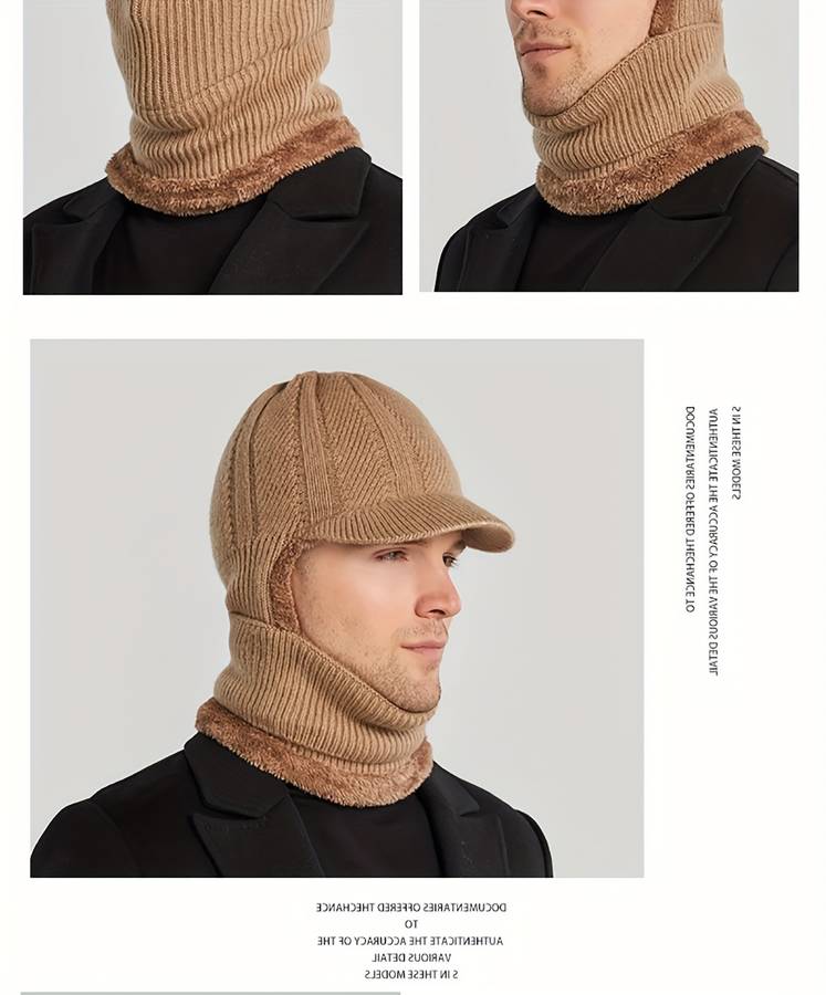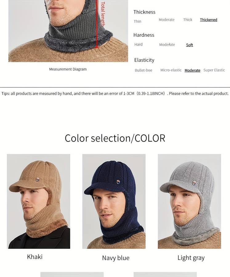 Hat Khaki color Khaki 1: LOOGDEEL Winter Knit Hat with Detachable Ear Flaps & Neck Gaiter - Thermal Fleec Weaving Method:Knit Fabric