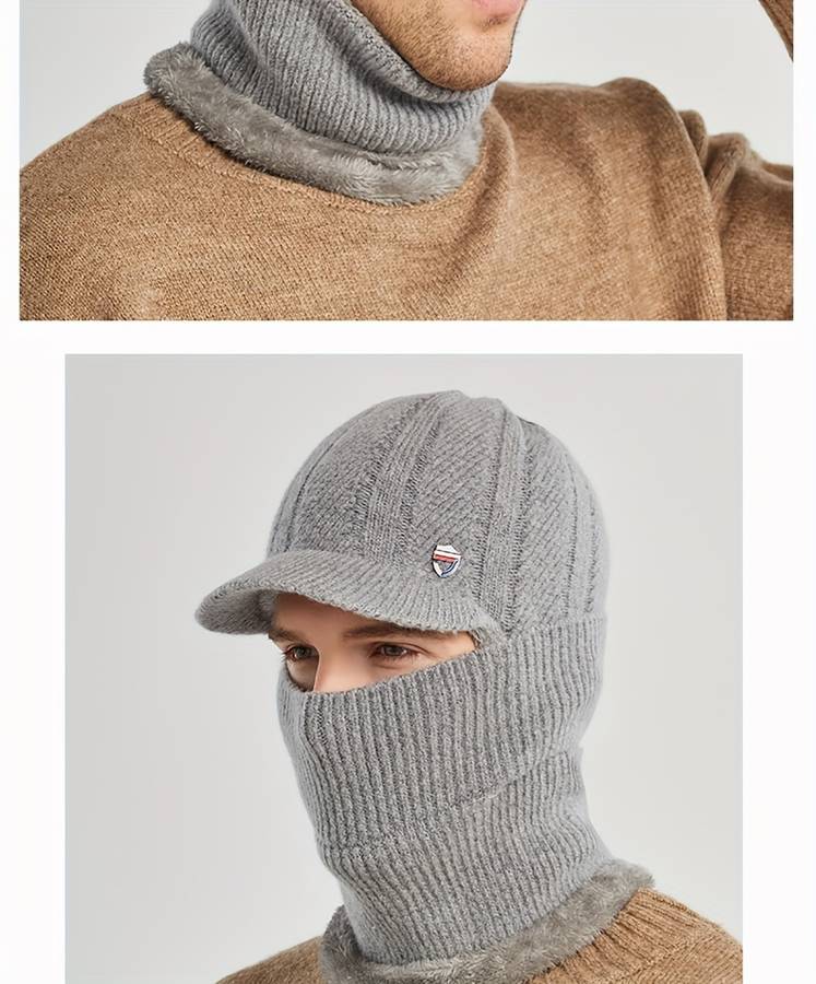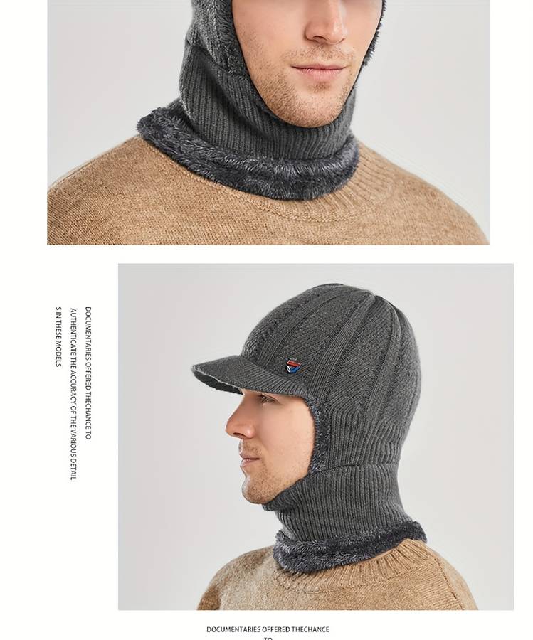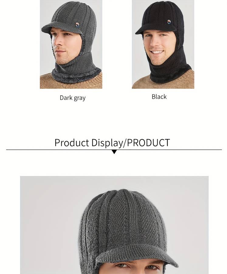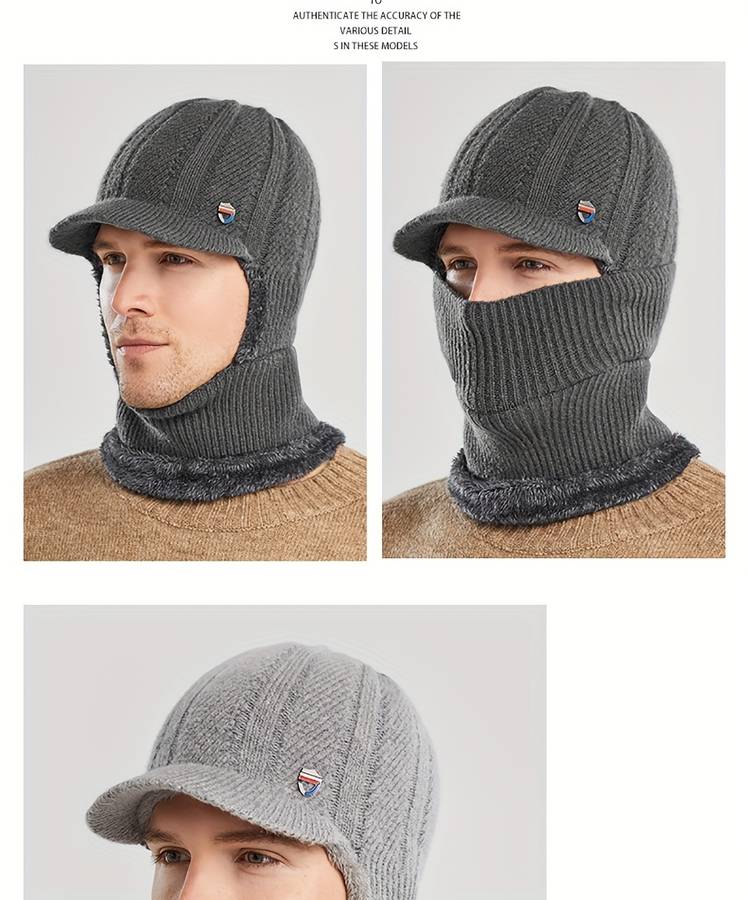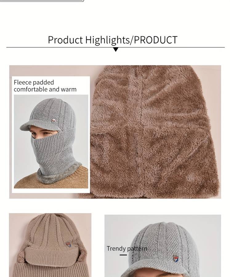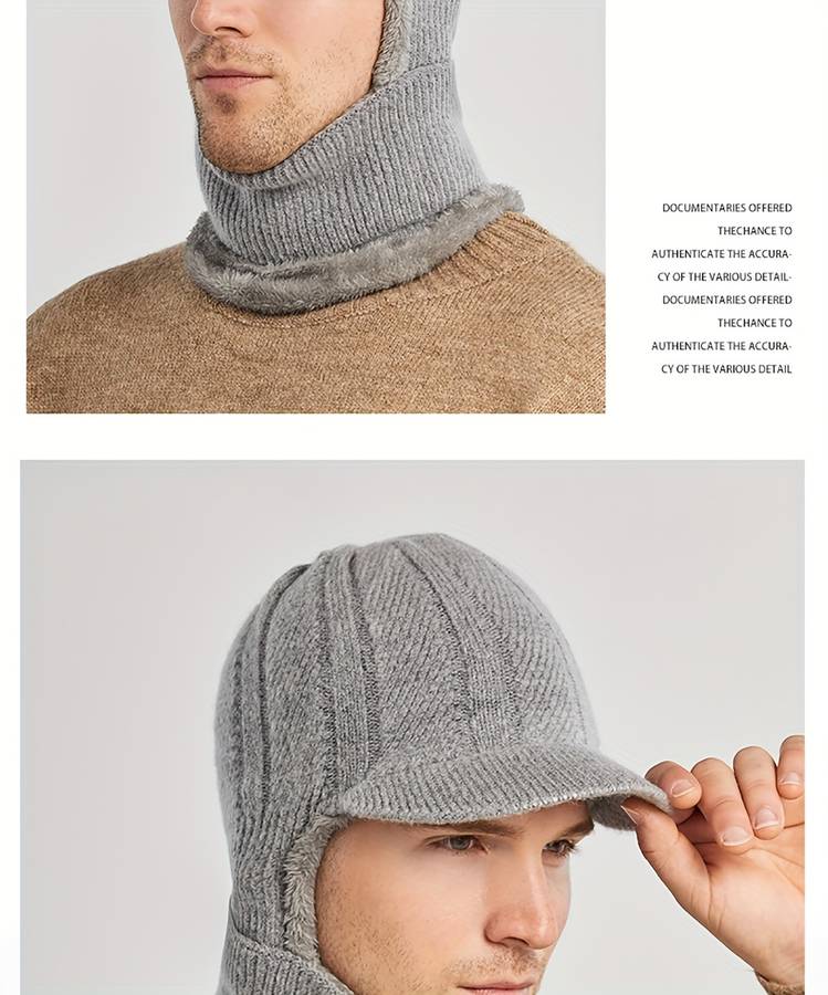 Hat Khaki color Khaki 1: LOOGDEEL Winter Knit Hat with Detachable Ear Flaps & Neck Gaiter - Thermal Fleec Weaving Method:Knit Fabric