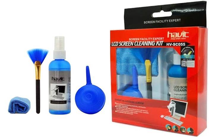 Havit LCD Screen Cleaning Kit Easily Removes Dirt, Dust, And Stubborn Fingerprints For Use On Monitors , LCD LED Televisions , Mobile phones , Notebooks , Cameras Lenses , Kit Includes Soft MicroFibre Cleaning Cloth, Soft Brush, Manual Air Pump and 130ml Disinfectant Cleaning Spray, Retail Box, No warranty