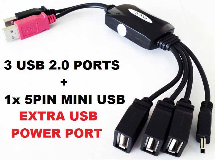 HAVIT OCTOPUS 3 PORT USB HUB WITH MINI USB AND EXTRA POWER PORT (BRAND NEW)
