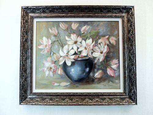 A magnificent painting! The composition is simply lifelike and is superbly complimented by a beautiful frame! A true statement piece! .The painting measures 53cm x 43cm and the frame measures 71cm x 61cm. Own this special piece at a very low price, act fast and bid now!