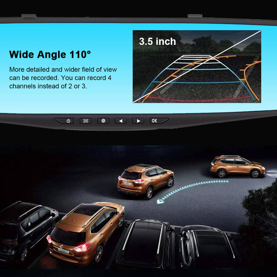 4. Extra Wide Viewing Angle 110ᆪ: More detailed and wider field of view can be recorded. For example, you can record 4 channels instead of 2 or 3. Glass fixed-focus lenses, instrument panel cams capture clearer, more vivid vision. The LCD screen gives you a wider view and a better visual experience.