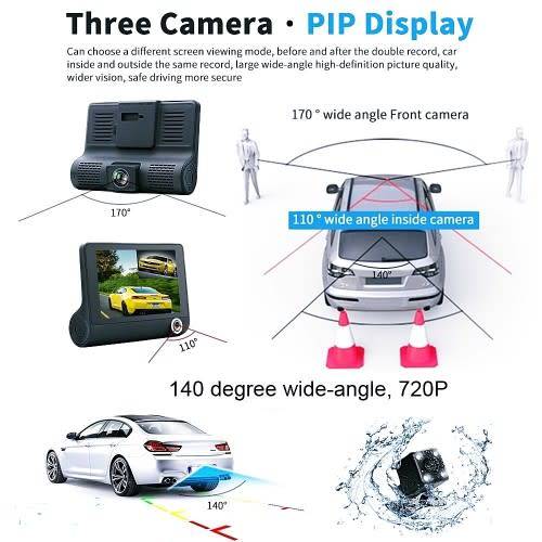 HD 1080P 3Lens Video Car DVR | Dash Cam with Front, Interior & Rear Cameras