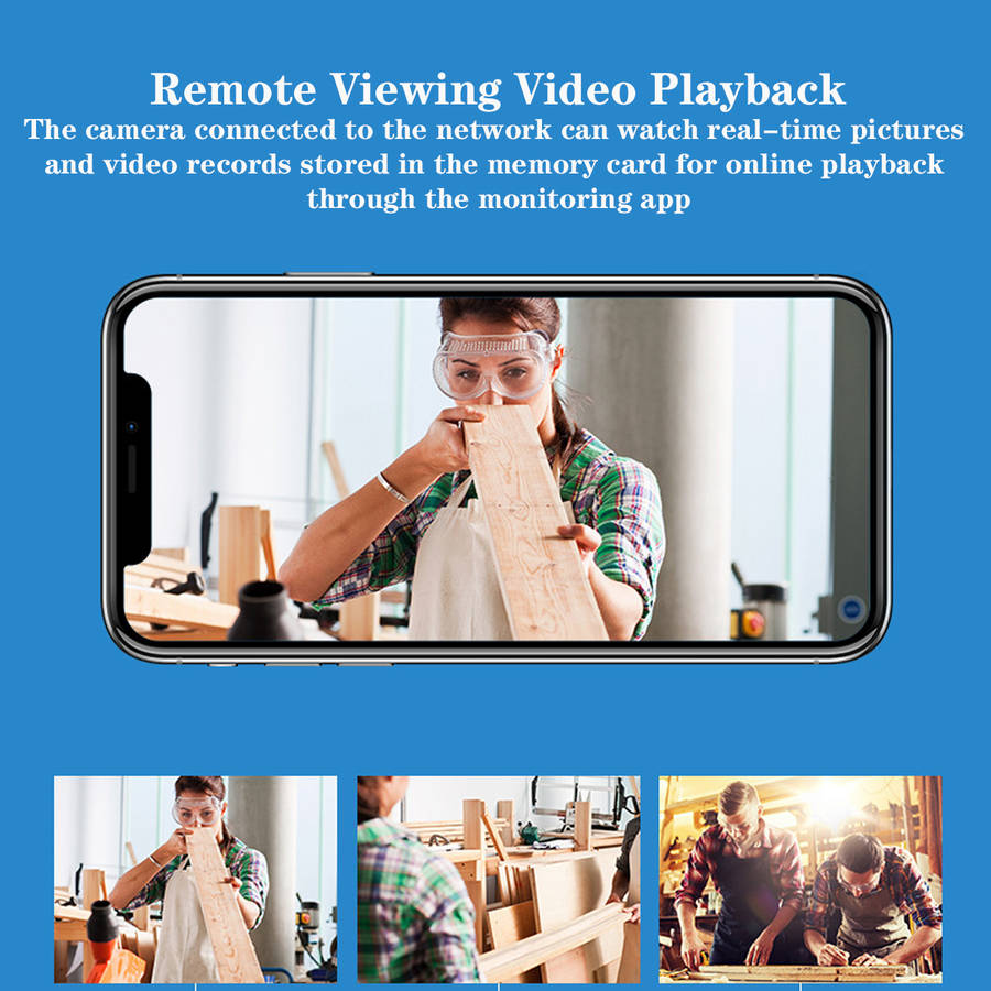 Remote viewing video playback:the camera connected to the network can watch real-time pictures and video records stored in the memory card for online playback through the monitoring app